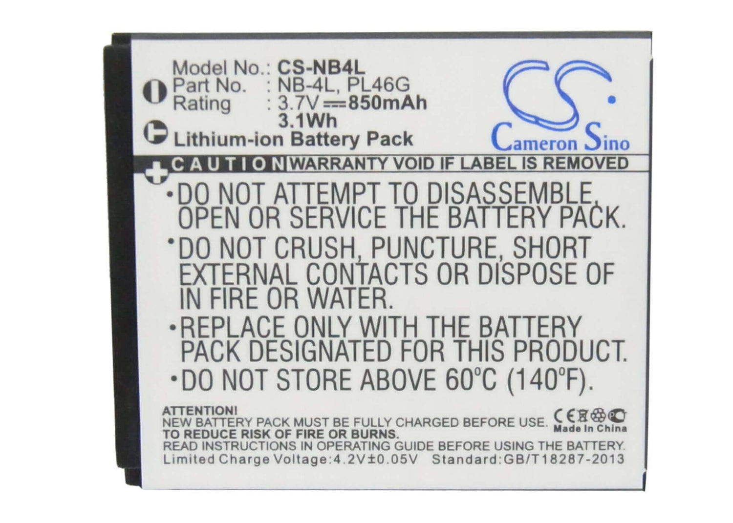 Batterie de remplacement Cameron Sino CS-NB4L pour appareils photo numériques Canon – 850mAh Li-ion, 3.7V