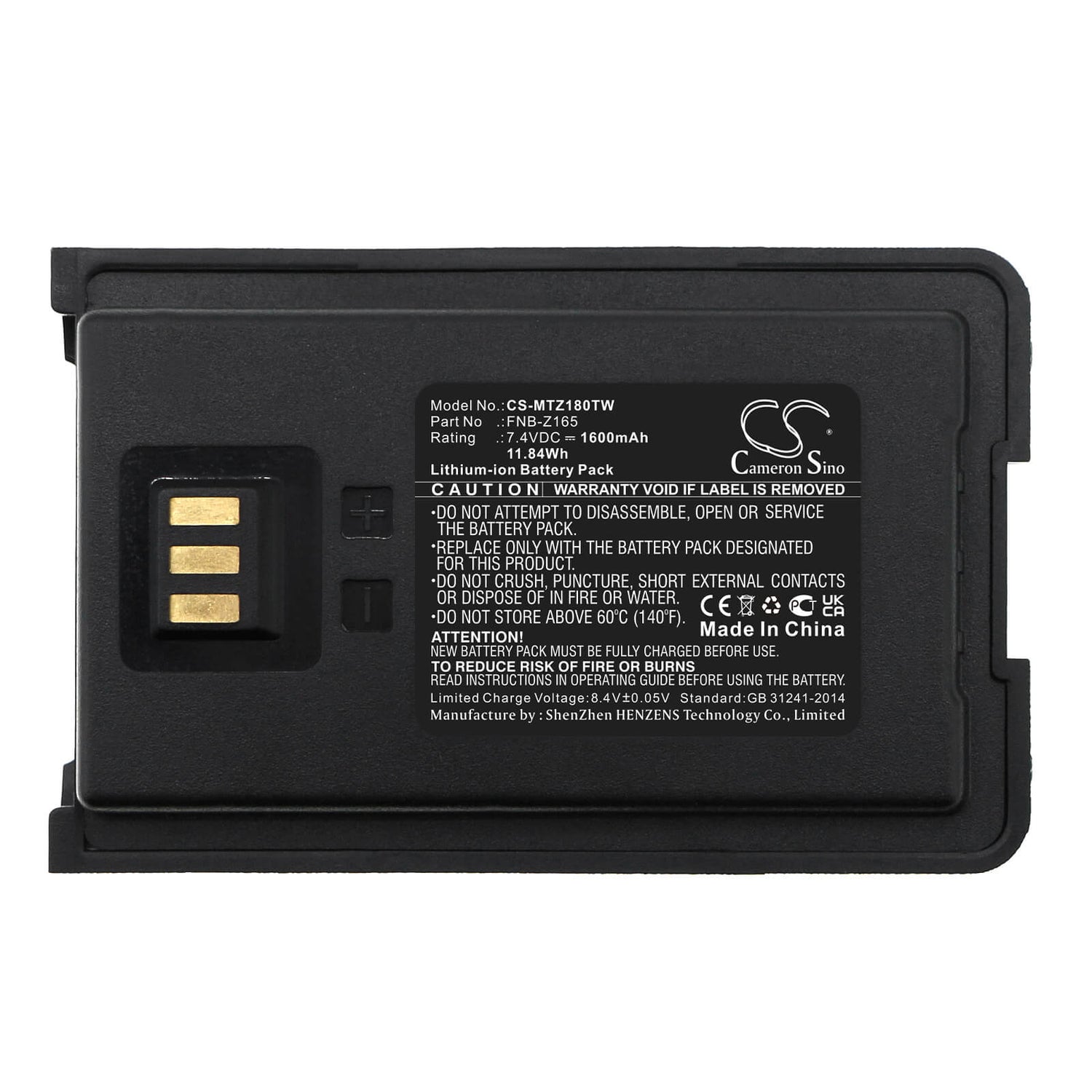 Cameron Sino CS-MTZ180TW Batterie de remplacement pour Motorola Radio à deux voies - 1600mAh / 11,84Wh