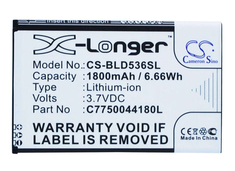 3,7V, Li-ion, 1800mAh, batterie de smartphone compatible avec Blu, C775004180l, D030, D030l, 6,66Wh