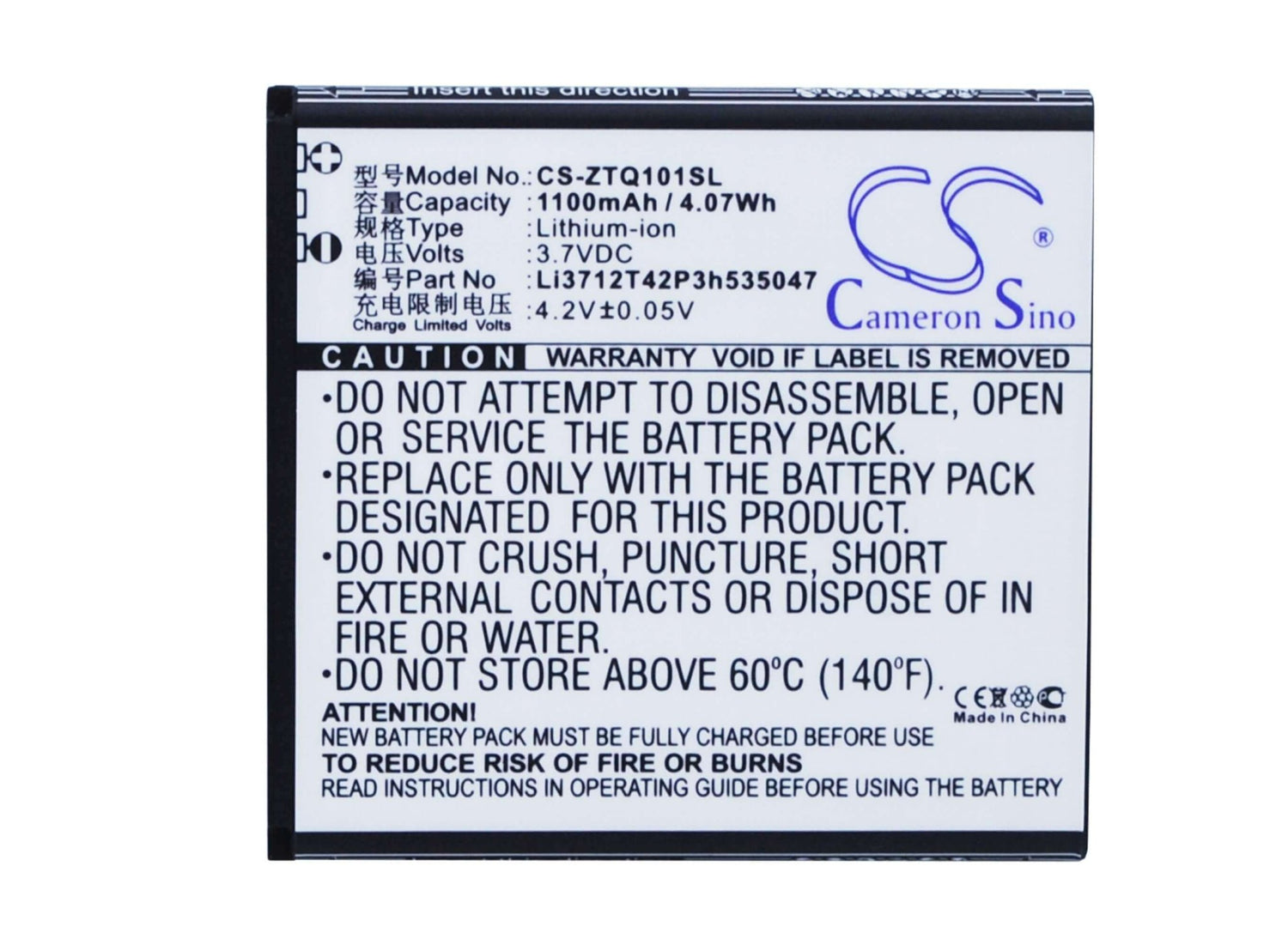 Cameron Sino CS-ZTQ101SL Batterie de remplacement pour le smartphone ZTE - 1100mAh / 4.07Wh