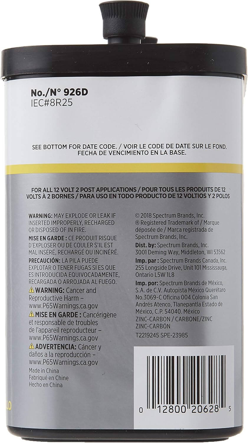 Cette batterie est garantie contre les fuites et conçue pour dépasser les exigences de performance de qualité industrielle. Que vous l'utilisiez sur des chantiers difficiles ou dans des applications d'urgence, la Rayovac® 926C offre une alimentation fiable lorsque cela compte le plus.