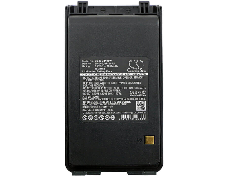 Batterie Li-ion pour radio bidirectionnelle Icom Ic-v80e, Ic-u80e remplace Bp-265 7,4 V, 2 600 mAh - 19,24 Wh