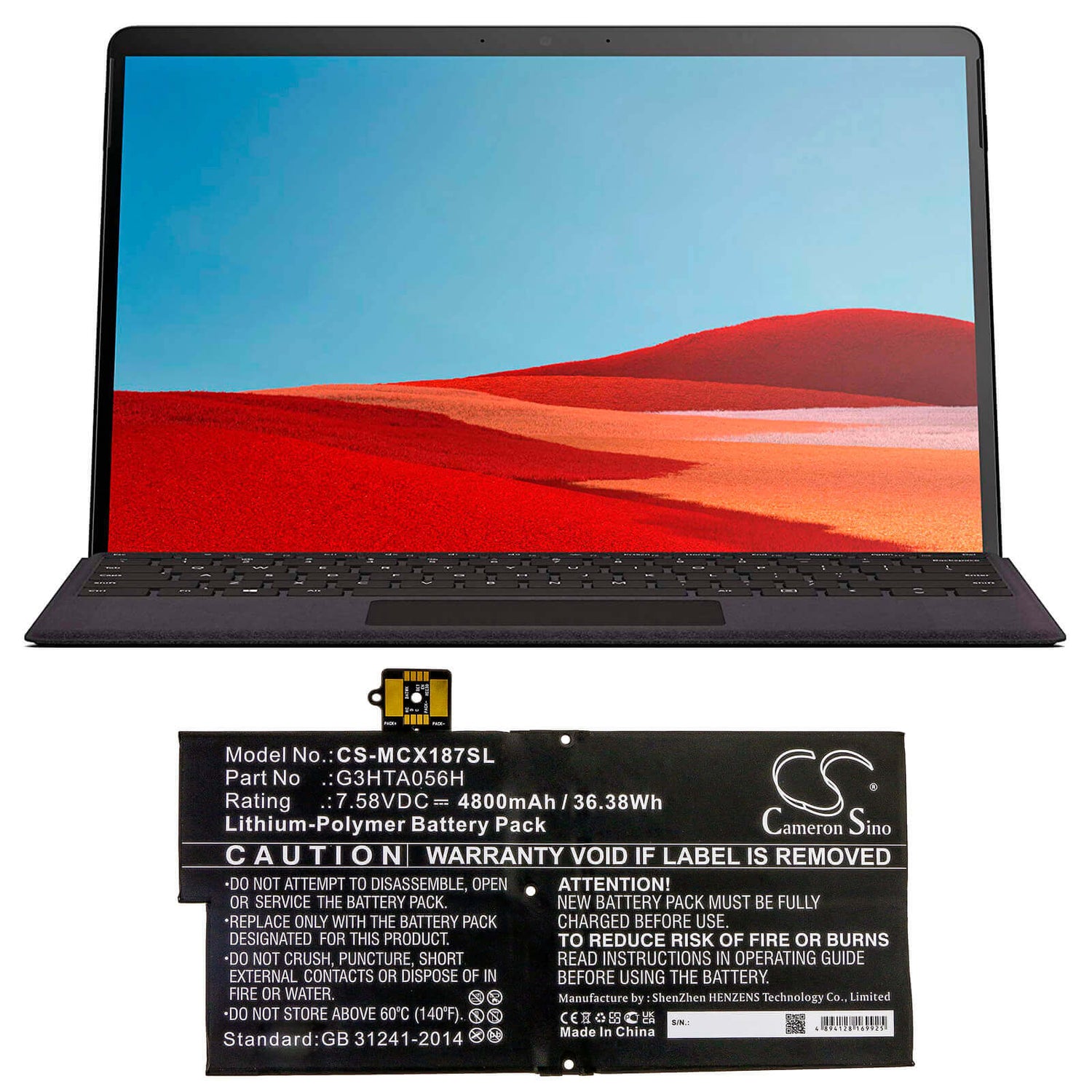 7.58 V, Li-polymère, 4800mAh, la batterie de la tablette s'adapte à Microsoft, G3HTA056H, Surface Pro X 1876, 36,38Wh