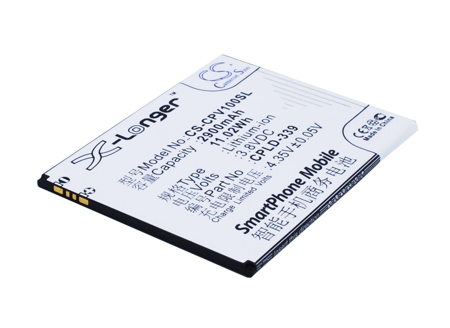 3,8V, Li-ion, 2900mAh, batterie de smartphone compatible avec Coolpad, Cpld-339, V1, V1-c, 11,02Wh