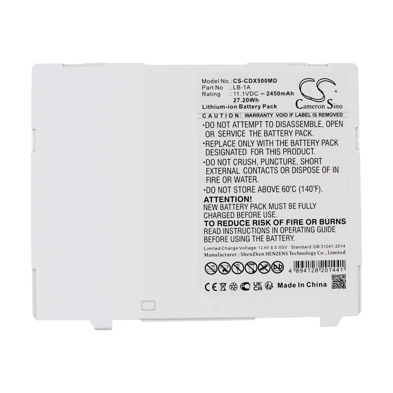 Cameron Sino CS-CDX500MD Batterie de remplacement pour Canon Medical - 2450mAh / 27,20Wh