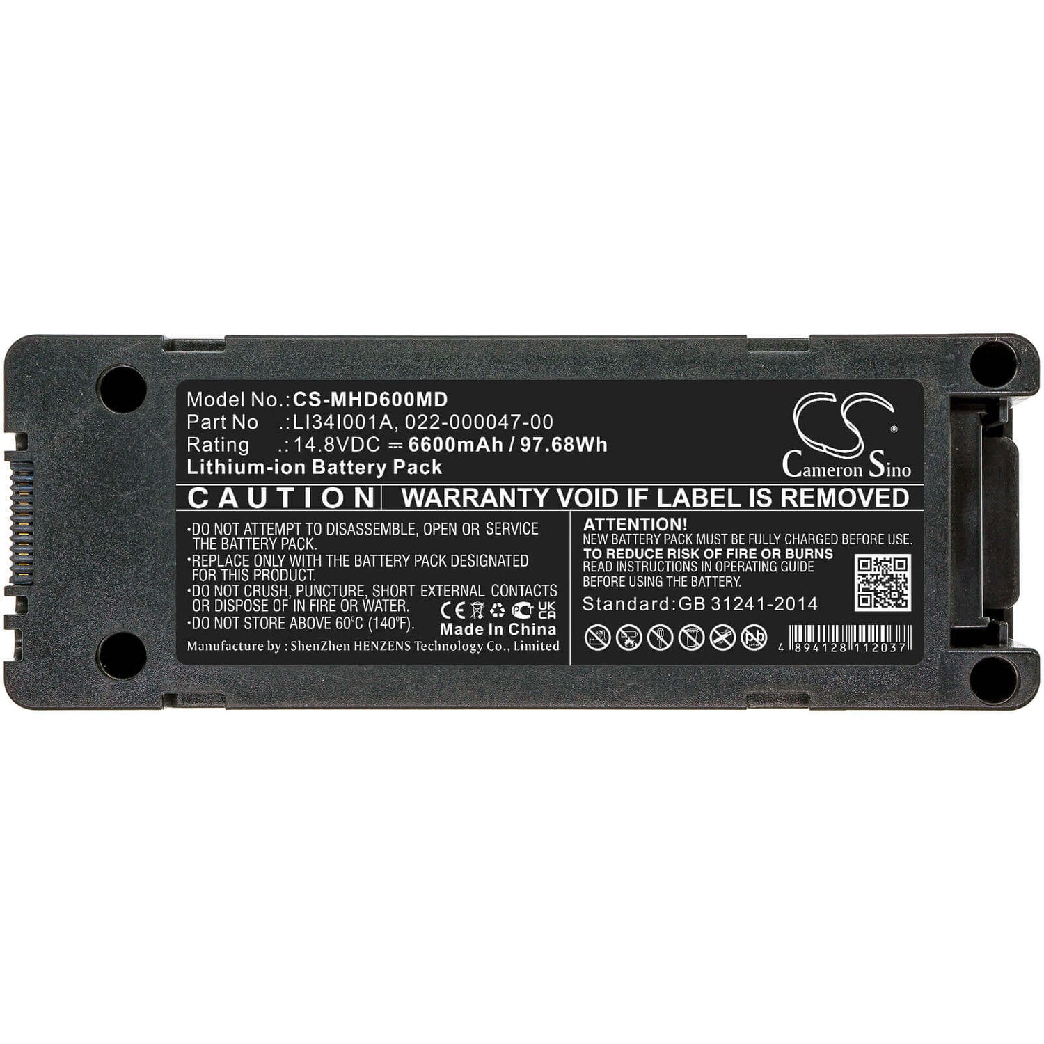 Cameron Sino CS-MHD600MD Batterie de remplacement pour Mindray Medical - 6600mAh / 97.68Wh