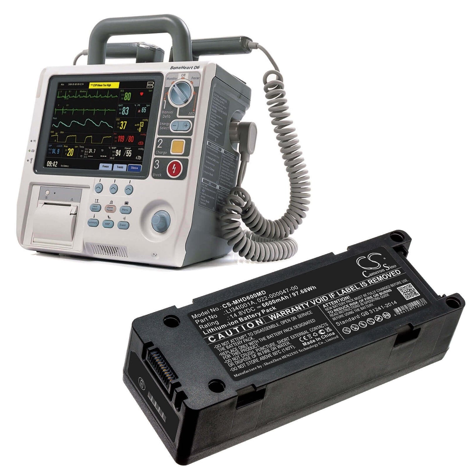 14.8V, Li-ion, 6600mAh, Medical Battery convient à MindRay, 022-000012-00, Beneheart D6, Beneheart DP-50, 97,68Wh