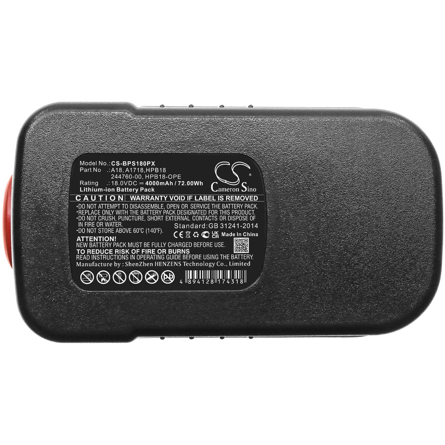 Cameron Sino CS-BPS180PX Batterie de remplacement pour noir et Decker, Firestorm Power Tools - 4000mAh / 72Wh
