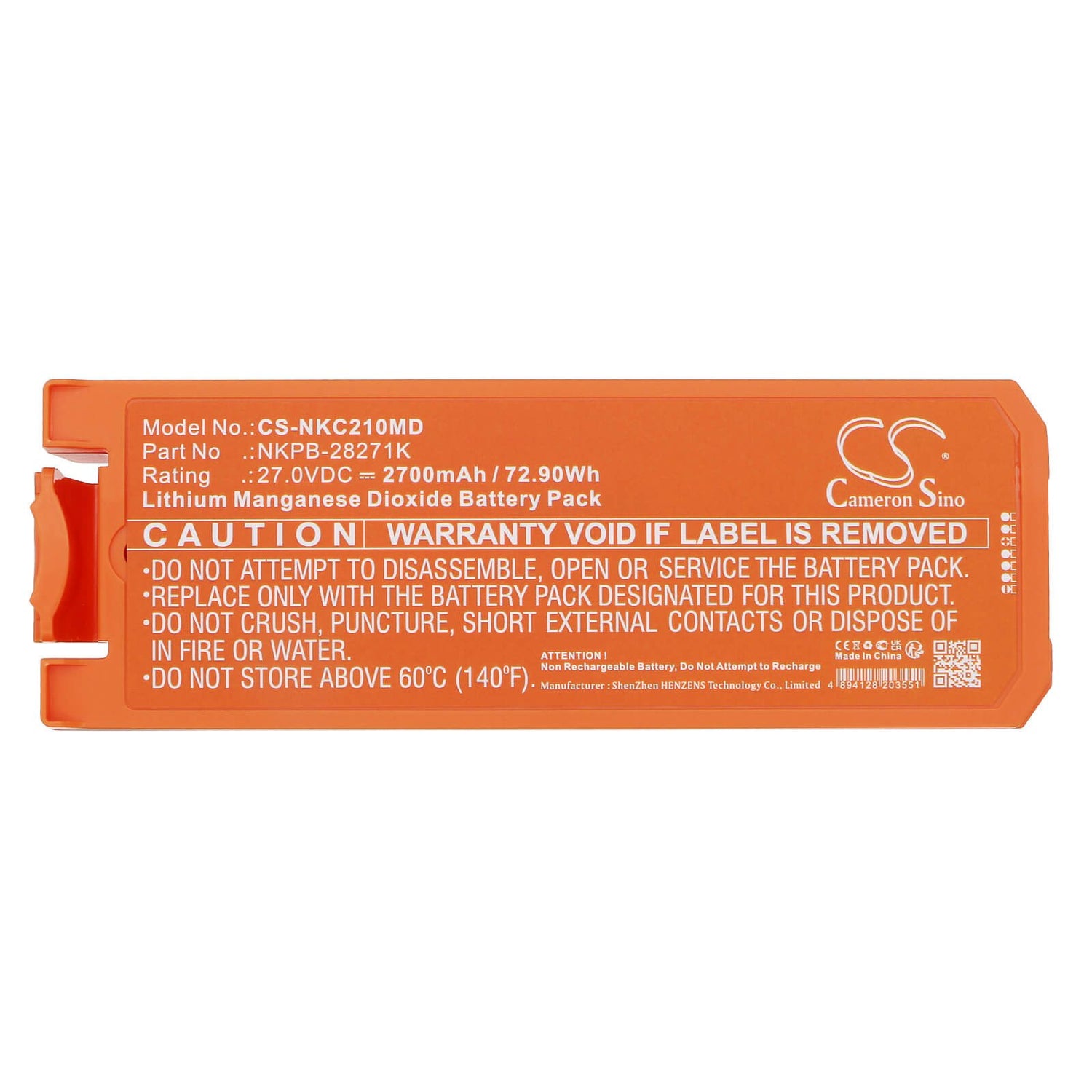 27.0V, LI-MNO2, 2700mAh, la batterie médicale s'adapte à Nihon Kohden, NKPB-28271K, AED-2100, AED-2100K, 72,90Wh