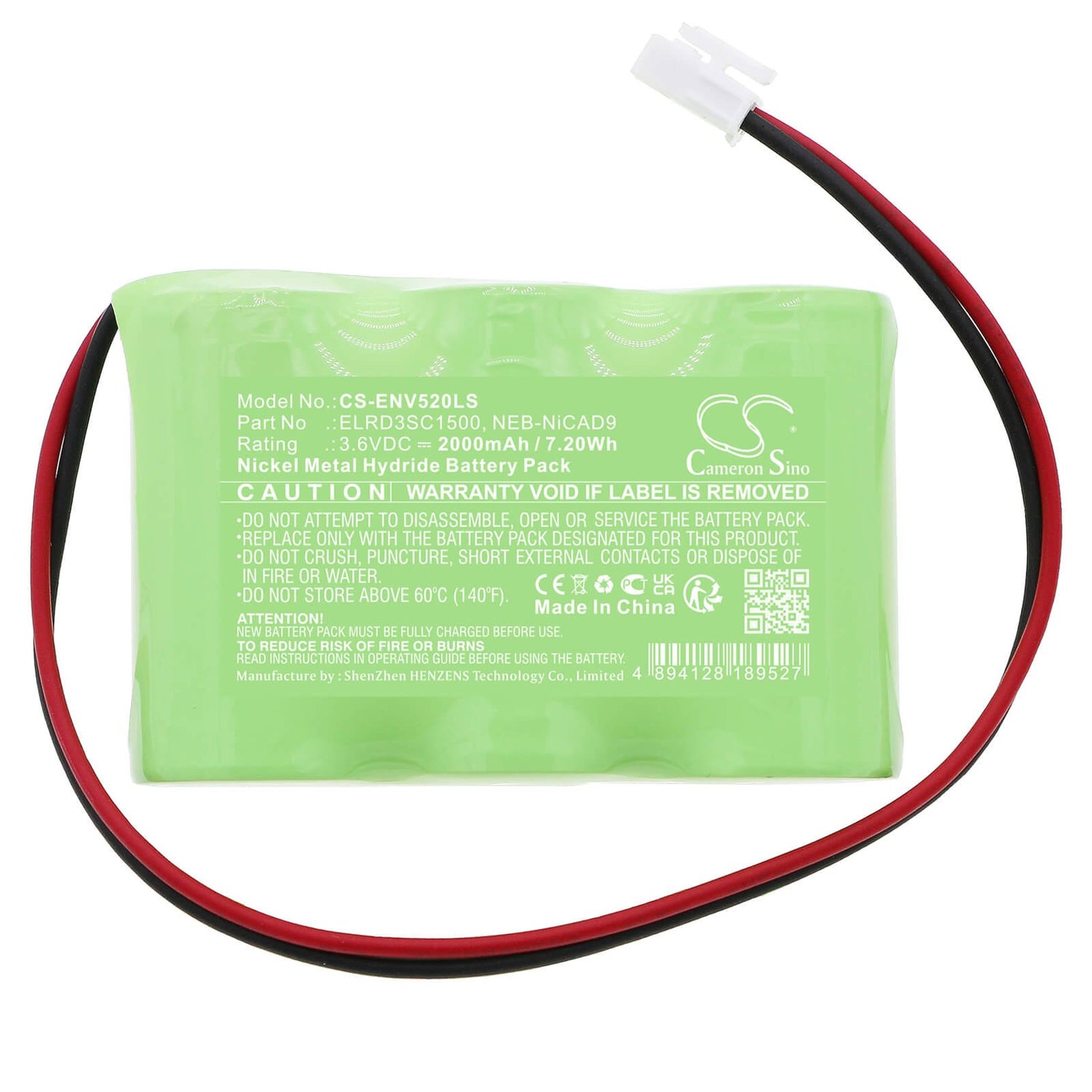 3.6V, Ni-MH, 2000mAh, batterie d'éclairage d'urgence s'adapte à Elro, ELRD3SC1500, NV52, 7,20Wh