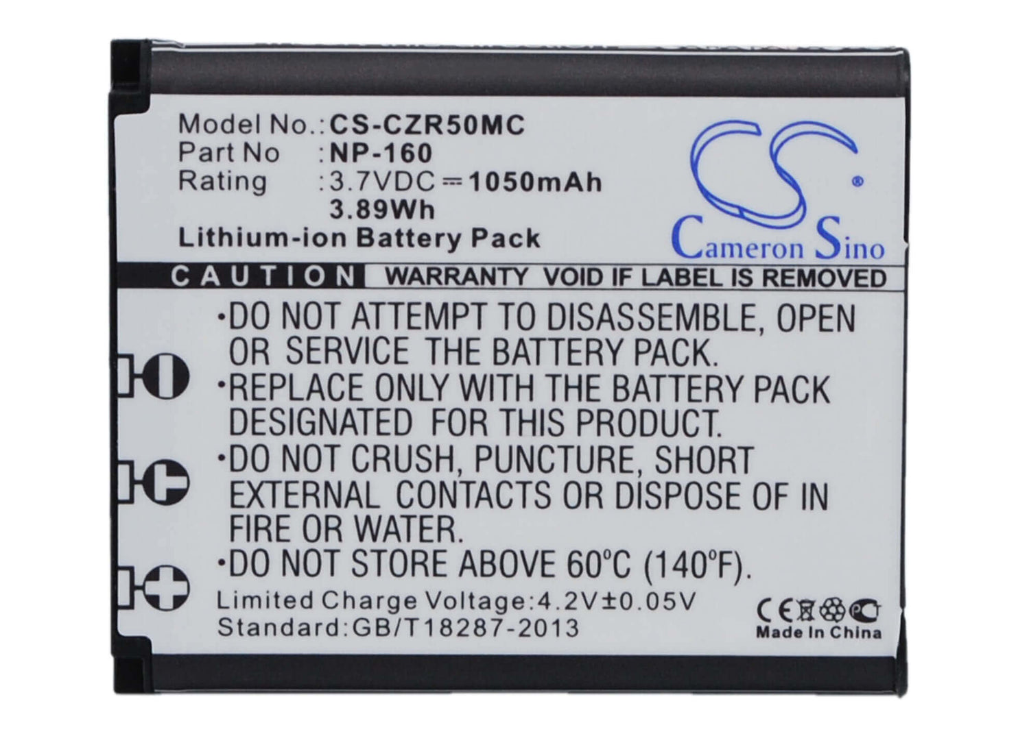 3,7 V, Li-ion, 1050mAh, la batterie de la caméra s'adapte à Casio, NP-160, exilim ex-fc500, exilim ex-zr50, 3,885wh