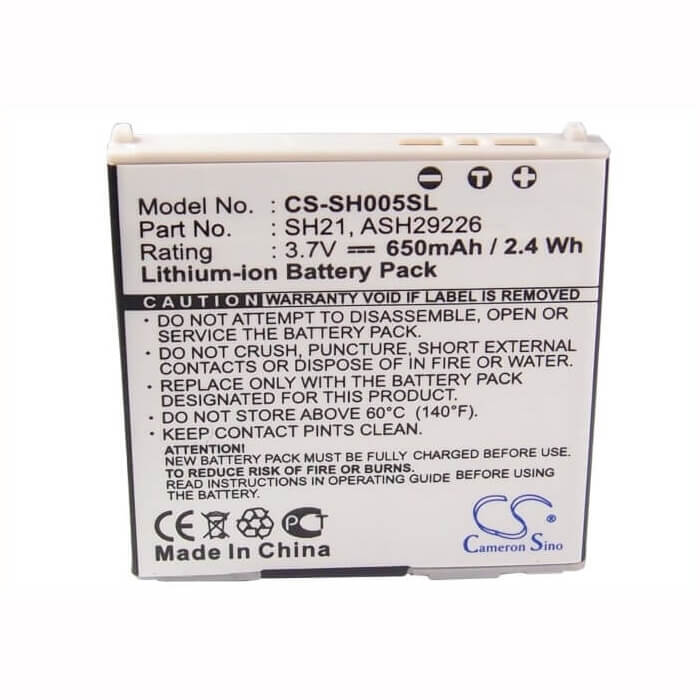 Déverrouiller les performances ininterrompues avec le Cameron Sino CS-Sh005SL Batterie de remplacement, conçue spécifiquement pour un smartphone tranchant. Cette haute qualité Batterie Li-ion 650mAh / 2,41Wh délivre un fiable Tension de 3,7 V avec une cote d'énergie de 2,41Wh, en vous assurant que votre appareil fonctionne à une efficacité maximale tout au long des séances prolongées. Quoi que vous fassiez, cette batterie fournit le pouvoir et fiabilité vous avez besoin.