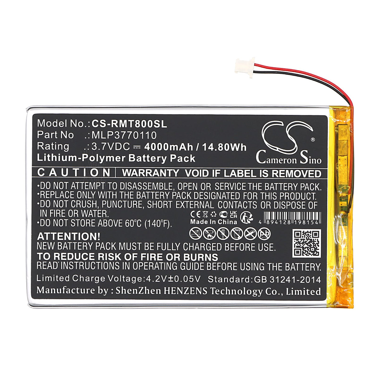 Achetez avec confiance! Le Cameron Sino CS-RMT800SL Batterie de remplacement comprend un Politique de retour de 30 jours et un Garantie de remplacement d'un an, assurer votre satisfaction et votre tranquillité d'esprit.