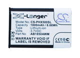 3.7V, Li-ion, 1800mAh, Smartphone Battery convient à Philips, AB1850AWM, AB1720AWM, AB1790AWM, 6,66Wh