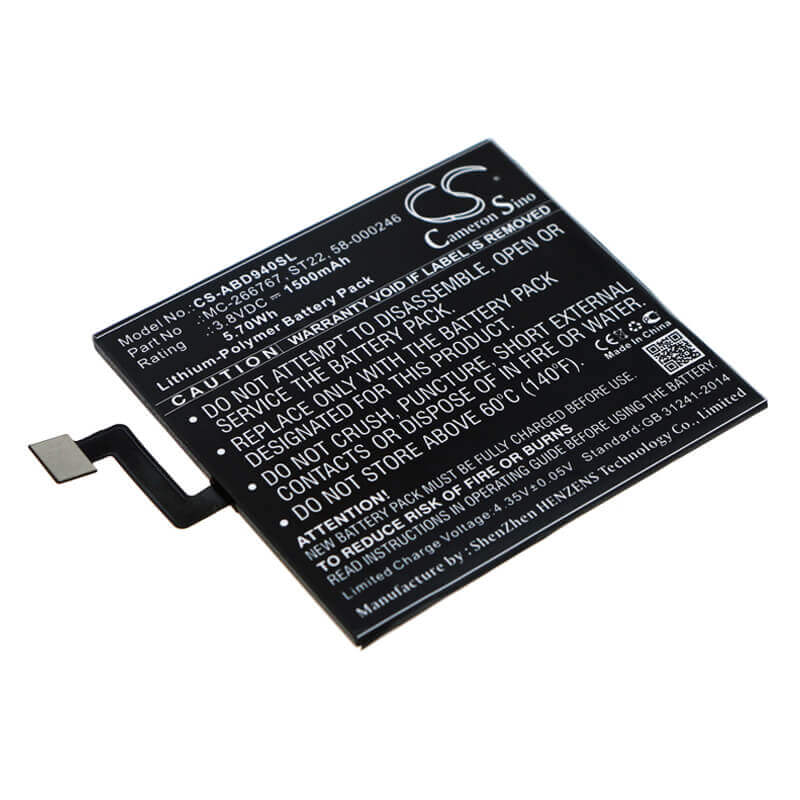Déverrouiller les performances ininterrompues avec le Cameron Sino CS-ABD940SL Batterie de remplacement, conçue spécifiquement pour la tablette Amazon. Cette haute qualité Batterie Li-polymère de 1500mAh / 5,70Wh délivre un fiable Tension de 3,8 V avec une cote d'énergie de 5,70Wh, en vous assurant que votre appareil fonctionne à une efficacité maximale tout au long des séances prolongées. Quoi que vous fassiez, cette batterie fournit le pouvoir et fiabilité vous avez besoin.