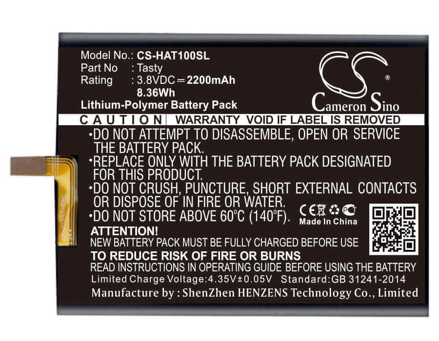 Déverrouiller les performances ininterrompues avec le Cameron Sino CS-HAT100SL Batterie de remplacement, conçue spécifiquement pour le smartphone haut de gamme. Cette haute qualité 2200mAh / 8,36Wh-WH Batter délivre un fiable Tension de 3,8 V avec une cote d'énergie de 8,36Wh, en vous assurant que votre appareil fonctionne à une efficacité maximale tout au long des séances prolongées. Quoi que vous fassiez, cette batterie fournit le pouvoir et fiabilité vous avez besoin.