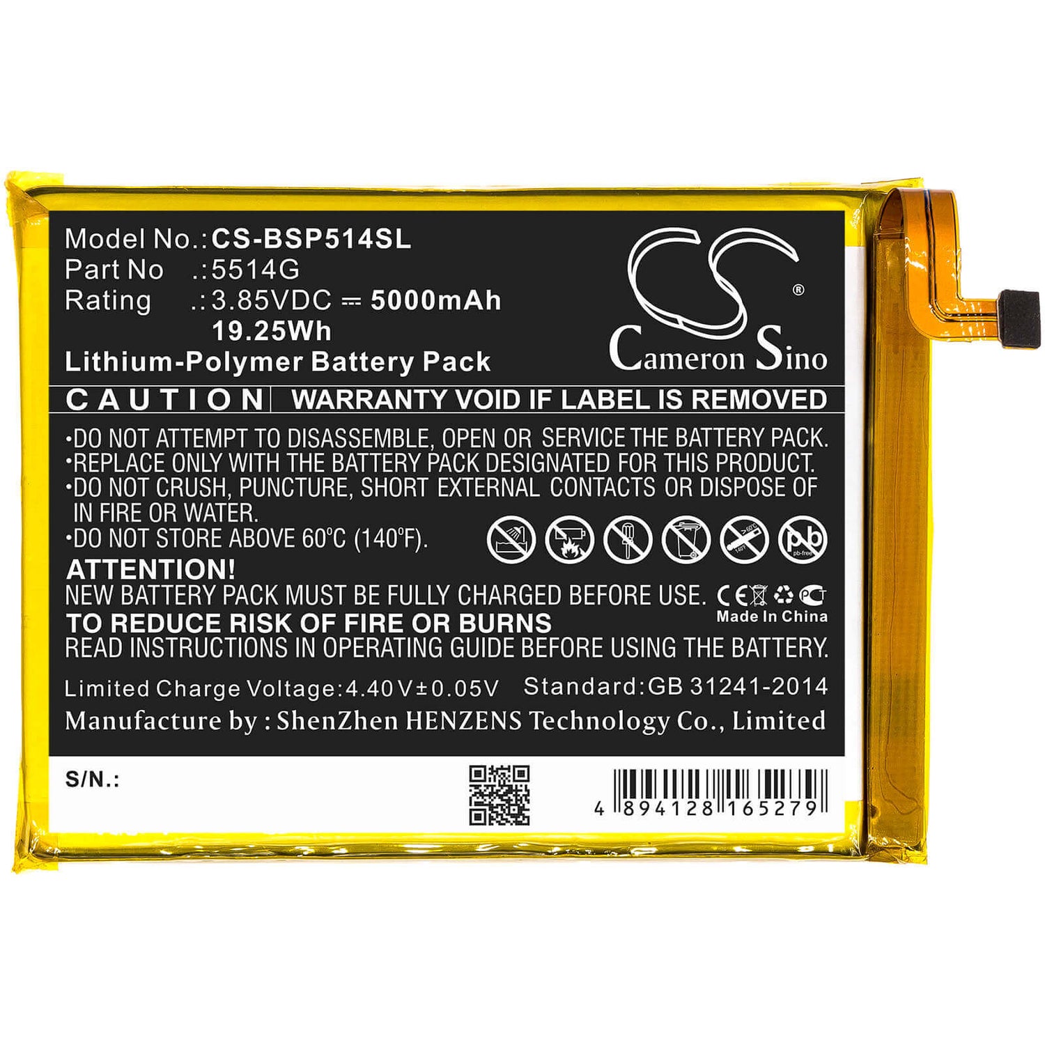 Achetez avec confiance! Le Cameron Sino CS-BSP514SL Batterie de remplacement comprend un Politique de retour de 30 jours et un Garantie de remplacement d'un an, assurer votre satisfaction et votre tranquillité d'esprit.
