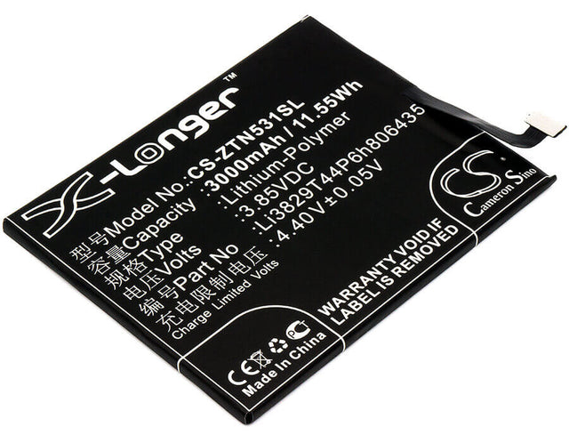 3,85V, Li-Polymer, 3000mAh, la batterie du smartphone s'adapte à Nubia, ZTE, LI3829T44P6H806435, NX531, NX531J, 11,55Wh