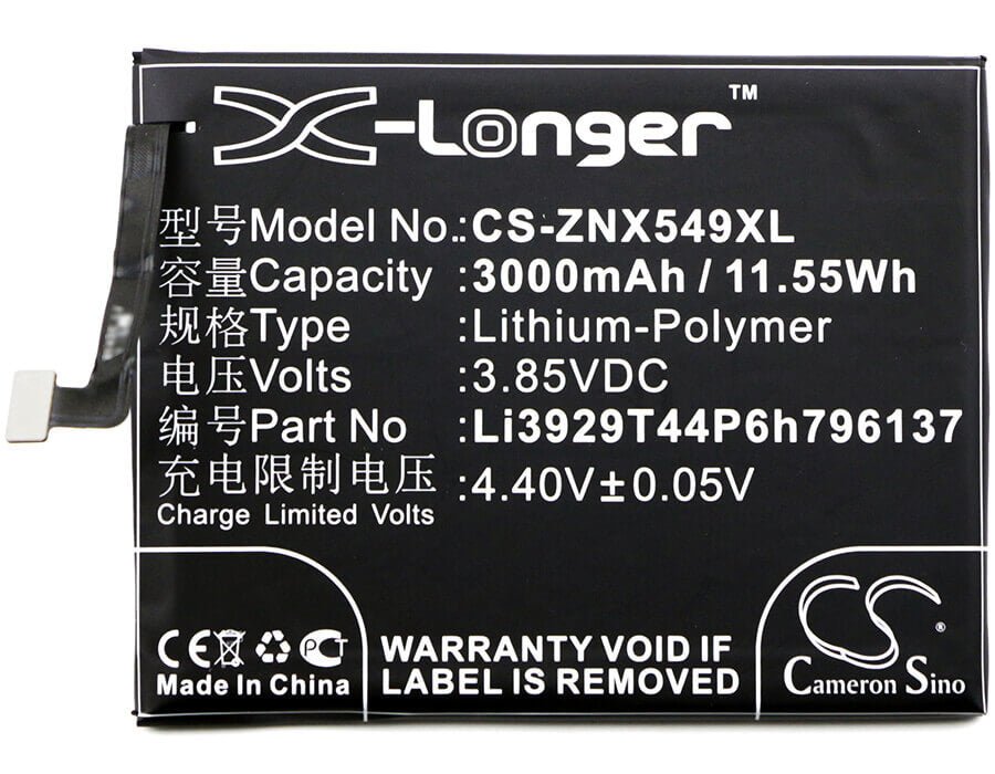 Cameron Sino CS-Znx549xl Batterie de remplacement pour Nubia, Smartphone ZTE - 3000mAH / 11,55W