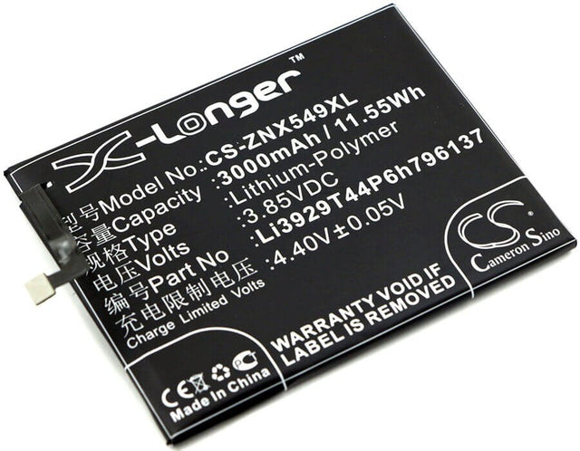3.85V, Li-Polymer, 3000mAh, la batterie du smartphone s'adapte à Nubia, ZTE, LI3929T44P6H796137, NX549J, Z11 Mini S, 11,55W