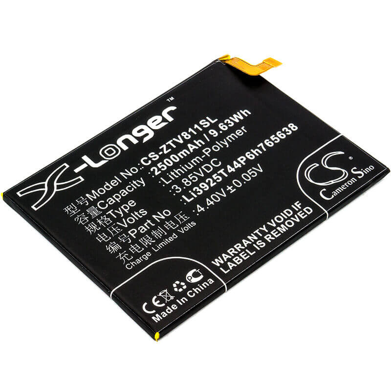 3.85V, Li-polymère, 2500mAh, la batterie du smartphone s'adapte à ZTE, LI3925T44P6H765638, Blade V8 Lite, Blade V8 Lite Dual Sim, 9.63Wh