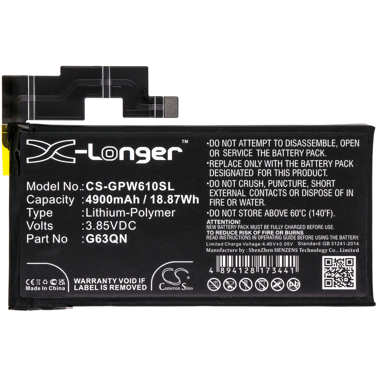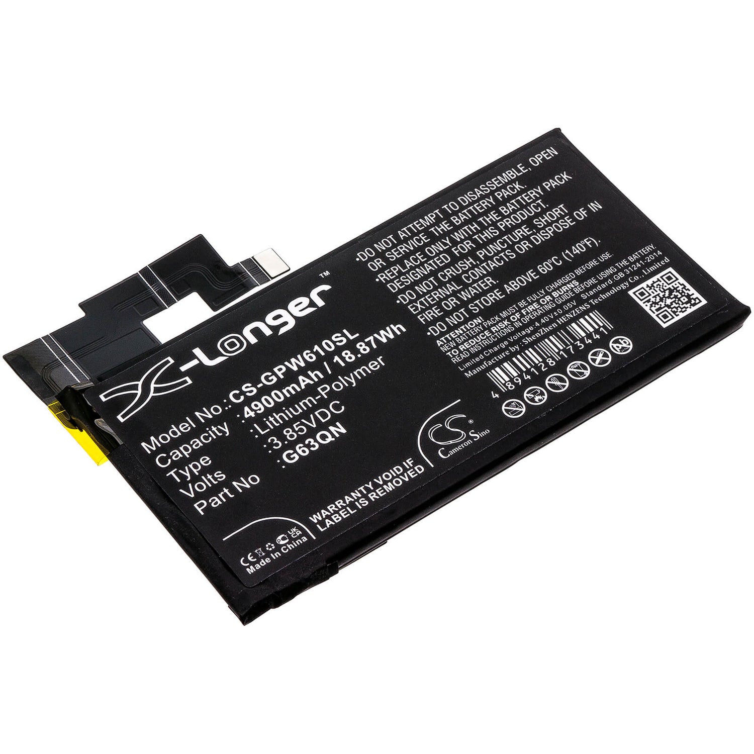 Déverrouiller les performances ininterrompues avec le Cameron Sino CS-GPW610SL Batterie de remplacement, conçue spécifiquement pour le smartphone Google. Cette haute qualité 4900mAh / 18,87Wh Batterie Li-polymère délivre un fiable Tension de 3,85 V avec une cote d'énergie de 18,87Wh, en vous assurant que votre appareil fonctionne à une efficacité maximale tout au long des séances prolongées. Quoi que vous fassiez, cette batterie fournit le pouvoir et fiabilité vous avez besoin.