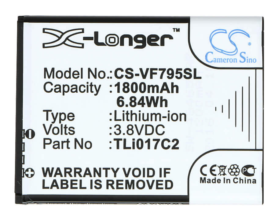 3.8V, Li-ion, 1800mAh, la batterie du smartphone s'adapte à Vodafone, TLI017C2, Smart Speed ​​6, VF795, 6,84Wh