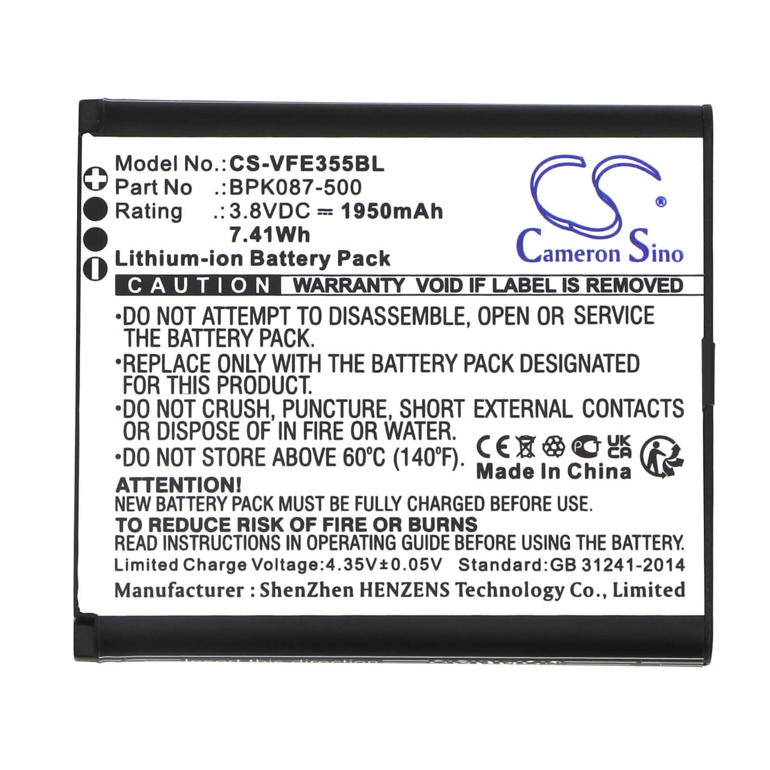 Achetez avec confiance! Le Cameron Sino CS-VFE355BL Batterie de remplacement comprend un Politique de retour de 30 jours et un Garantie de remplacement d'un an, assurer votre satisfaction et votre tranquillité d'esprit.