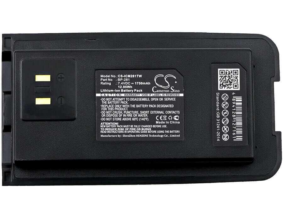 7.4v, Li-ion, 1750mAh, batterie radio à double sens s'adapte à ICOM, BP-281, IC-DP2, IC-DP2T, 12,95W