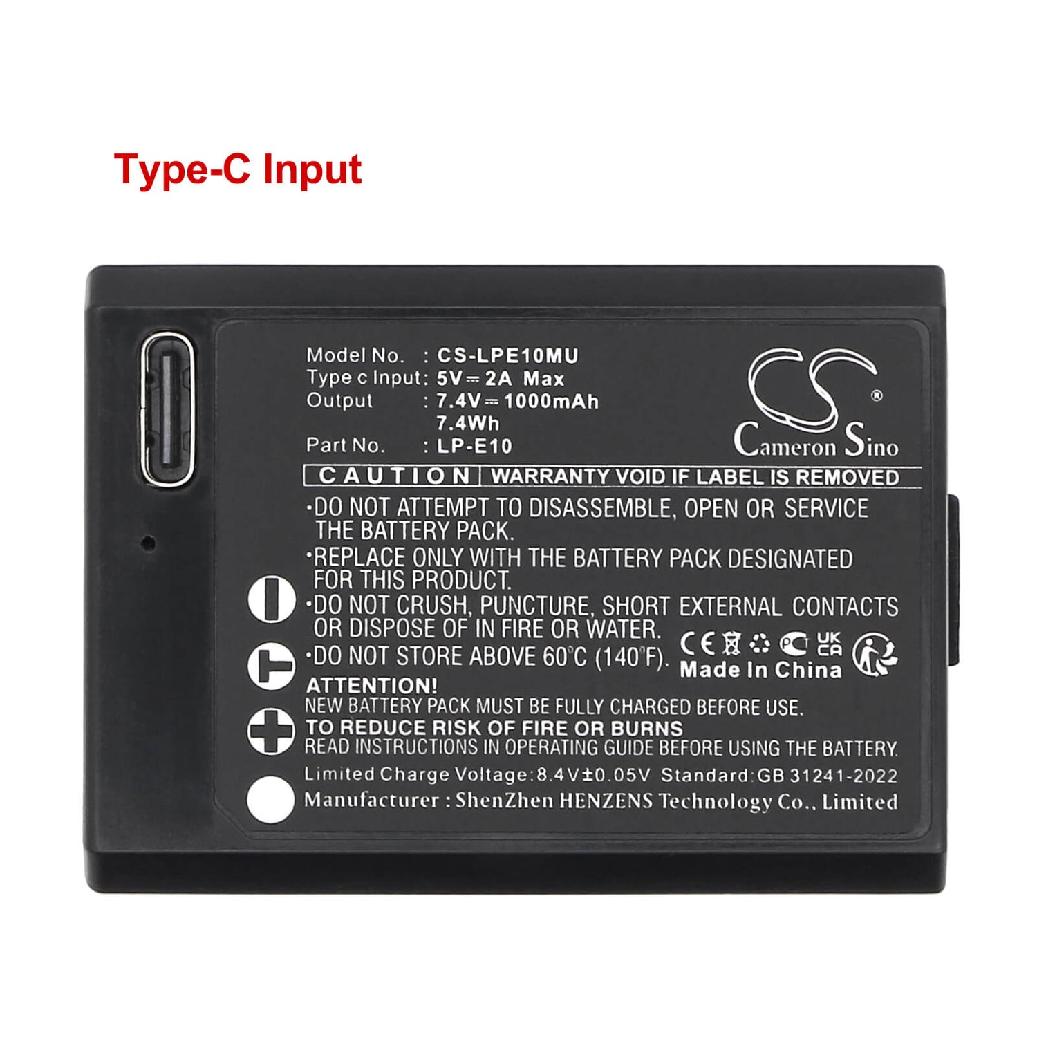 Batterie de remplacement Cameron Sino CS-LPE12MU avec USB-C pour appareils photo Canon – 750mAh