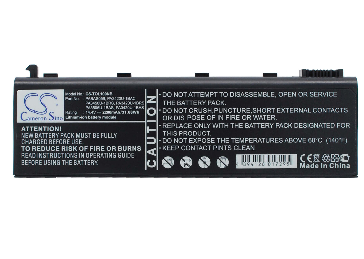 Cameron Sino CS-TOL100NB Batterie de remplacement pour Toshiba Notebook - 2200mAh / 31,68Wh