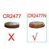 Pile de rechange au lithium 3 volts CR2477N de haute qualité. Cette pile est la version de la CR2477 avec une découpe en forme de crête. À ne pas confondre avec une CR2477 ordinaire.