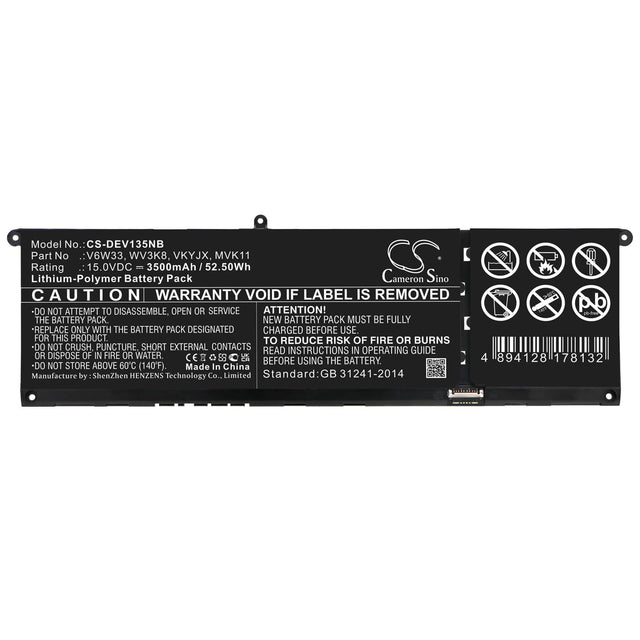 Unlock uninterrupted performance with the Cameron Sino CS-DEV135NB replacement battery, designed specifically for Dell Notebook. This high-quality 3500mAh / 52.50Wh Li-Polymer battery delivers a reliable 15.0V voltage with an energy rating of 52.5Wh, ensuring your device operates at peak efficiency throughout extended sessions. Whatever you are doing this battery provides the power and reliability you need.