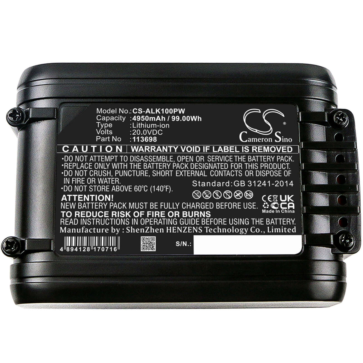 20.0V, Li-ion, 4950mAh, Lawn Mowers battery fits Al-ko, 113698, 34.8 Li Lawn Mover, Csa 2020 (113538), 99.00Wh