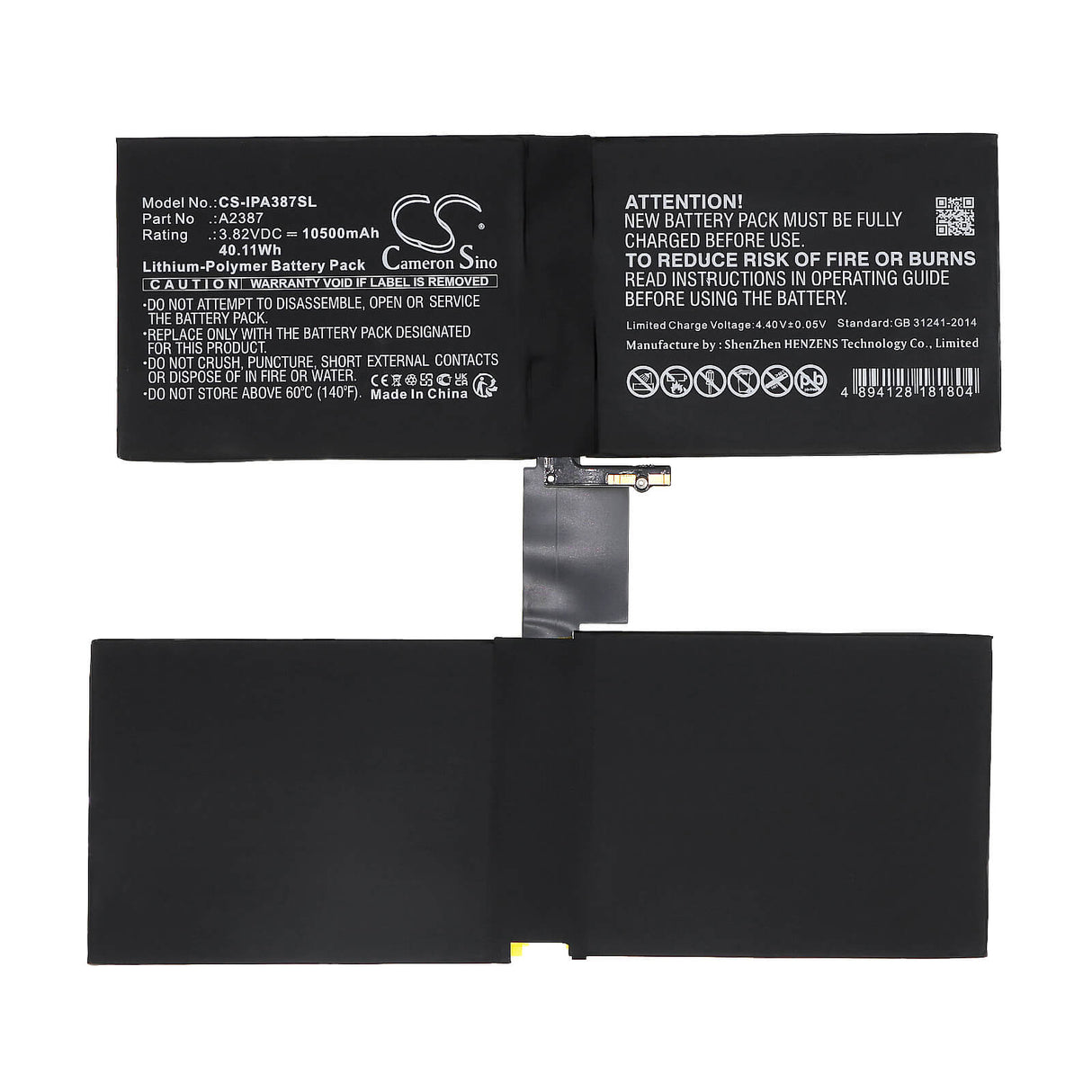 3.82V, Li-Polymer, 10500mAh, Tablet battery fits Apple, A2387, A2378, A2379, 40.11Wh