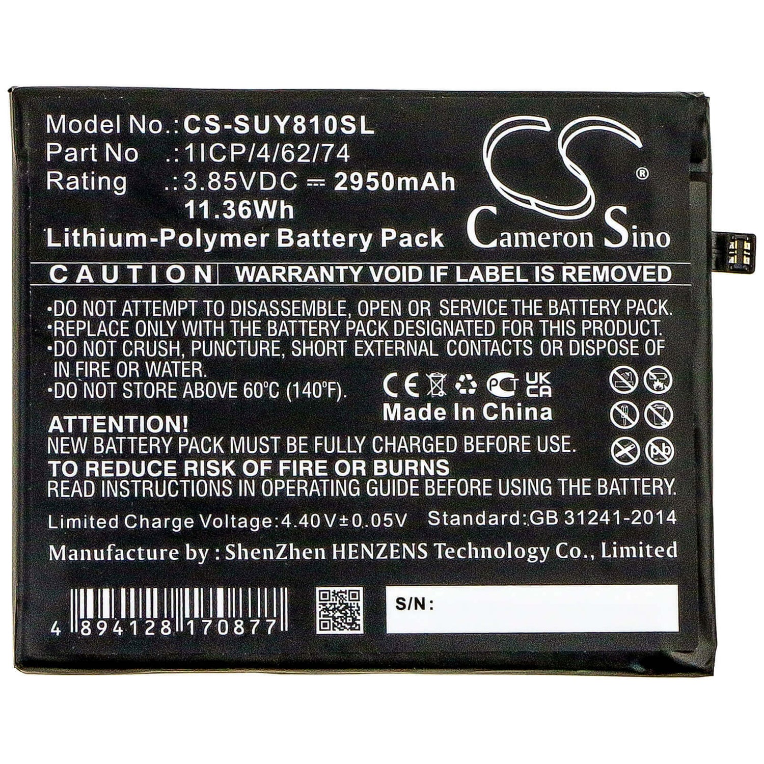 Unlock uninterrupted performance with the Cameron Sino CS-SUY810SL replacement battery, designed specifically for Sugar SmartPhone. This high-quality 2950mAh / 11.36Wh Li-Polymer battery delivers a reliable 3.85V voltage with an energy rating of 11.36Wh, ensuring your device operates at peak efficiency throughout extended sessions. Whatever you are doing this battery provides the power and reliability you need.