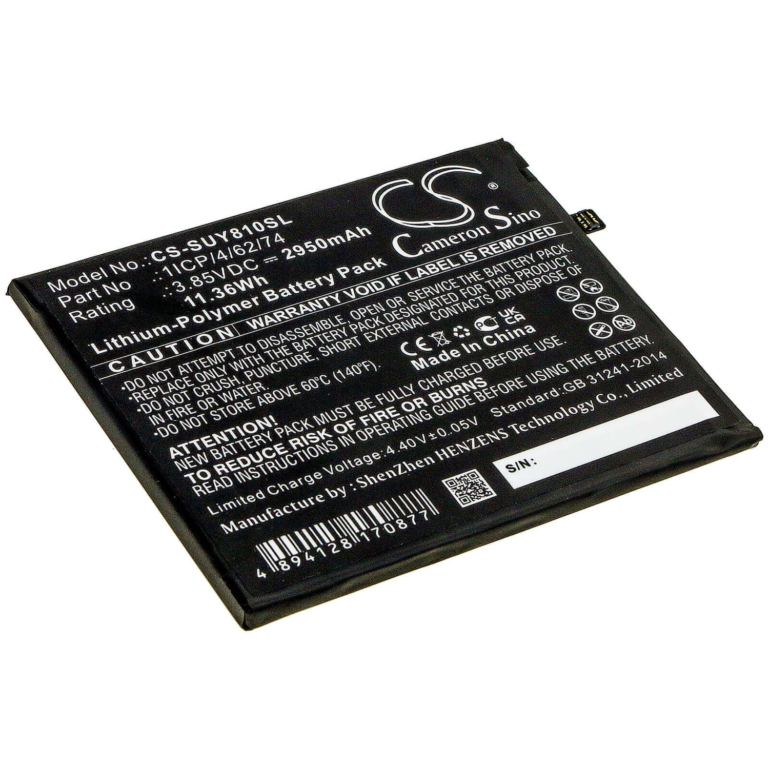 3.85V, Li-Polymer, 2950mAh, SmartPhone battery fits Sugar, 1icp/4/62/74, Y8 Max, 11.36Wh