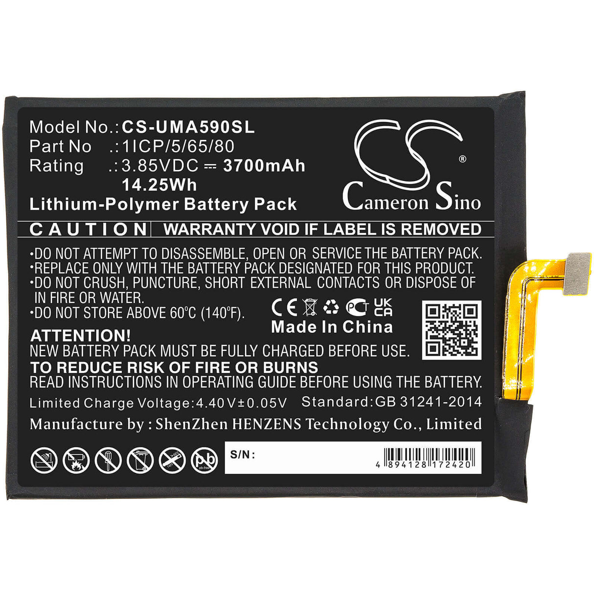3.85V, Li-Polymer, 3700mAh, SmartPhone battery fits Umi, 1icp/5/65/80, Umidigi A9 Pro, 14.25Wh