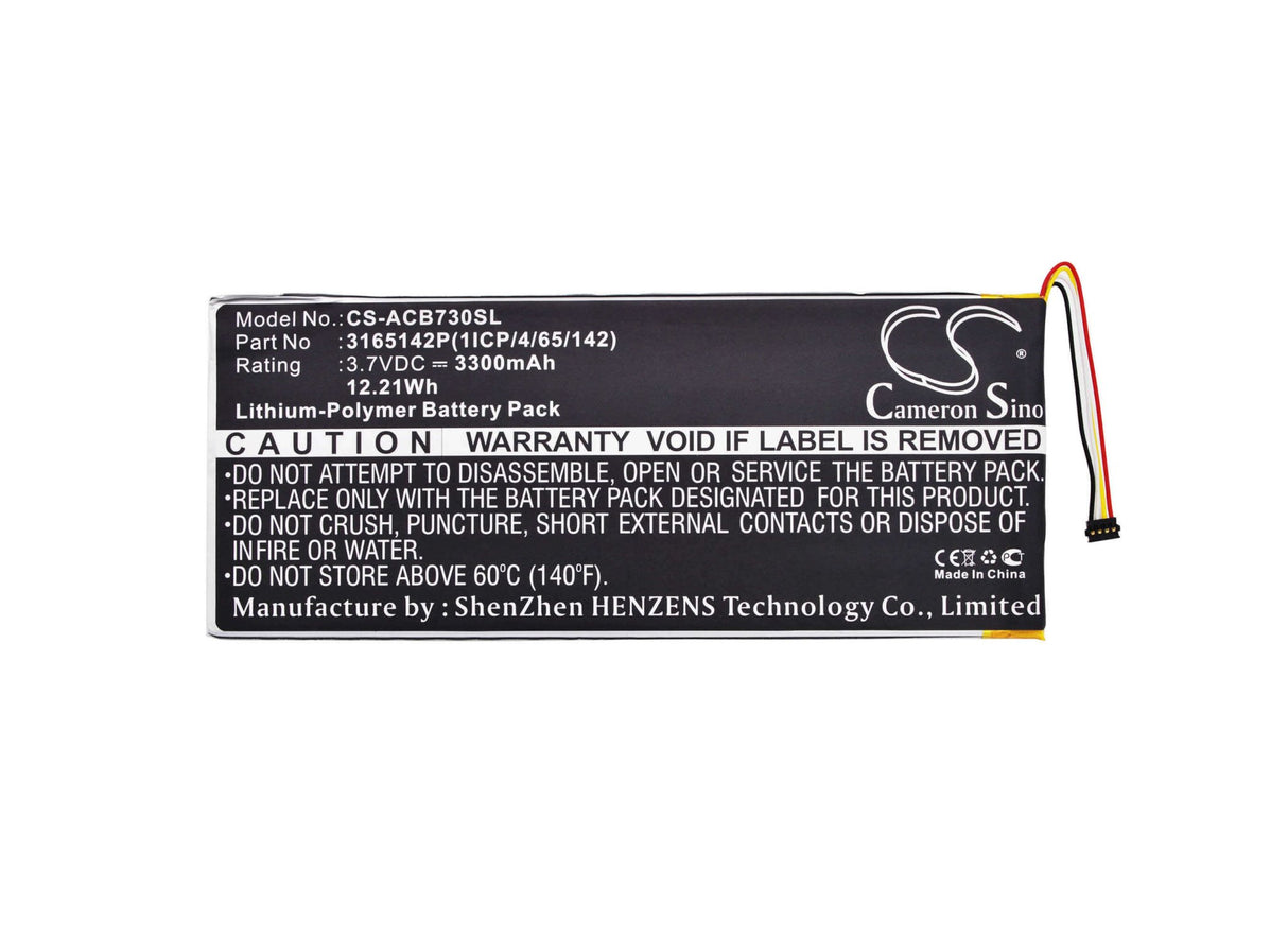 Unlock uninterrupted performance with the Cameron Sino CS-ACB730SL replacement battery, designed specifically for Acer Tablet. This high-quality 3300mAh / 12.21Wh Li-Polymer battery delivers a reliable 3.7V voltage with an energy rating of 12.21Wh, ensuring your device operates at peak efficiency throughout extended sessions. Whatever you are doing this battery provides the power and reliability you need.