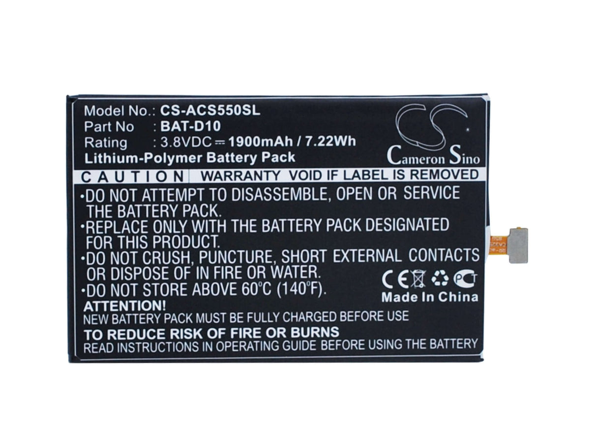 Cameron Sino CS-ACS550SL Replacement Battery for Acer SmartPhone - 1900mAh / 7.22Wh