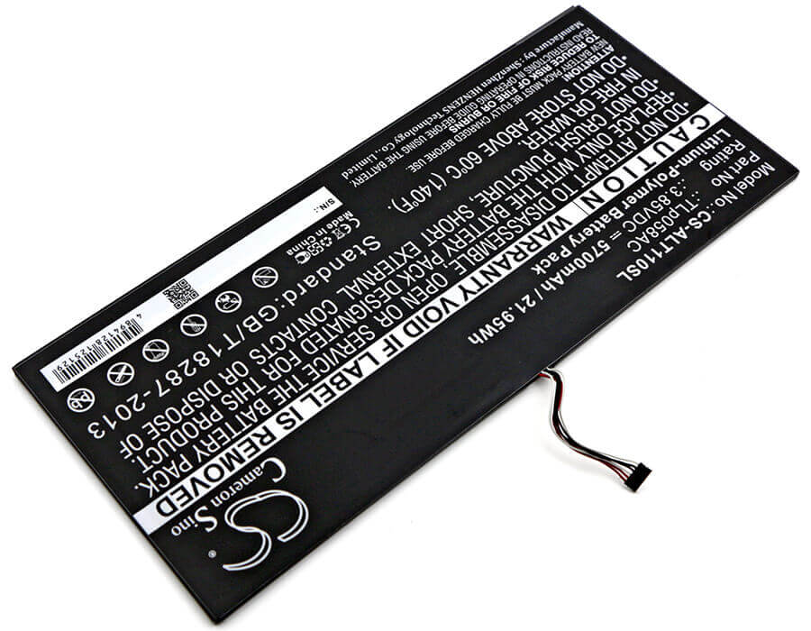 3.85V, Li-Polymer, 5700mAh, Tablet battery fits Alcatel, Tlp058ac, One Touch Plus 10", Ot-8085, 21.95Wh