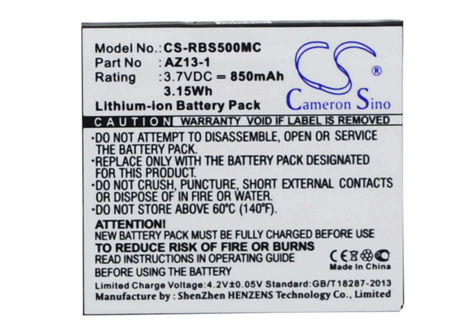 Cameron Sino is known for high-quality, long-lasting replacement batteries that meet the highest industry standards. The CS-RBS500MC replacement battery ensures: