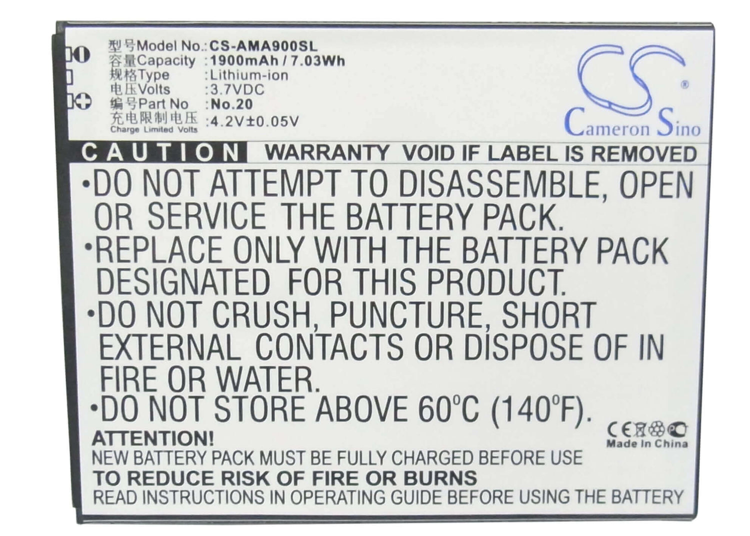 Cameron Sino CS-AMA900SL Replacement Battery for Amoi SmartPhone - 1900mAh / 7.03Wh