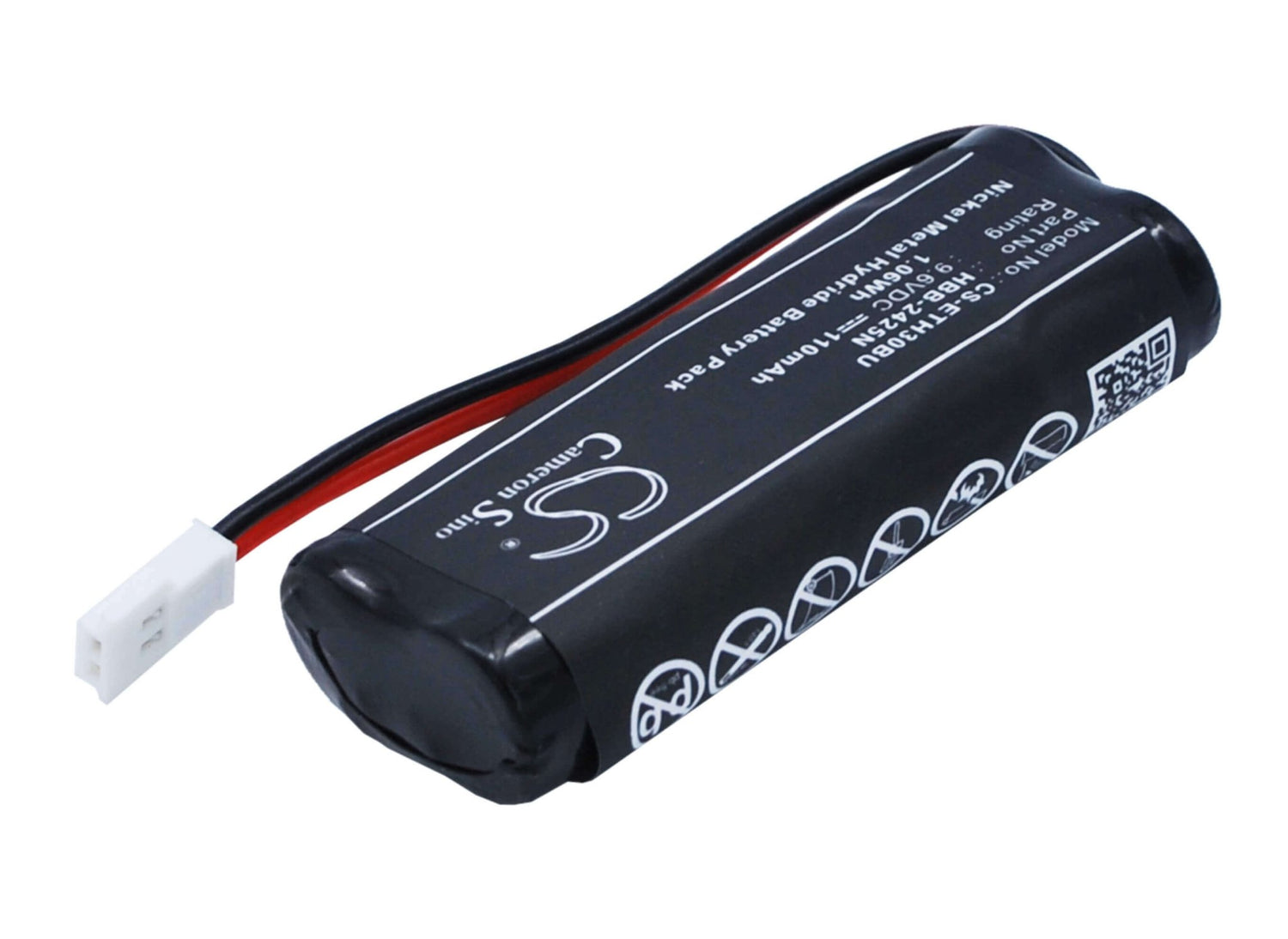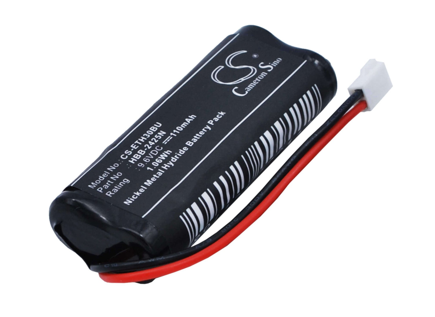 The product is a Ni-MH battery model number CS-ETH30BU, with a voltage of 9.6V and a capacity of 110mAh / 1.06Wh. It comes in a sleek black color and measures 53.20 X 21.22 X 11.10 mm. This product is compatible with Antares Tracker devices and comes with a 1-year warranty, providing you with peace of mind for your purchase.