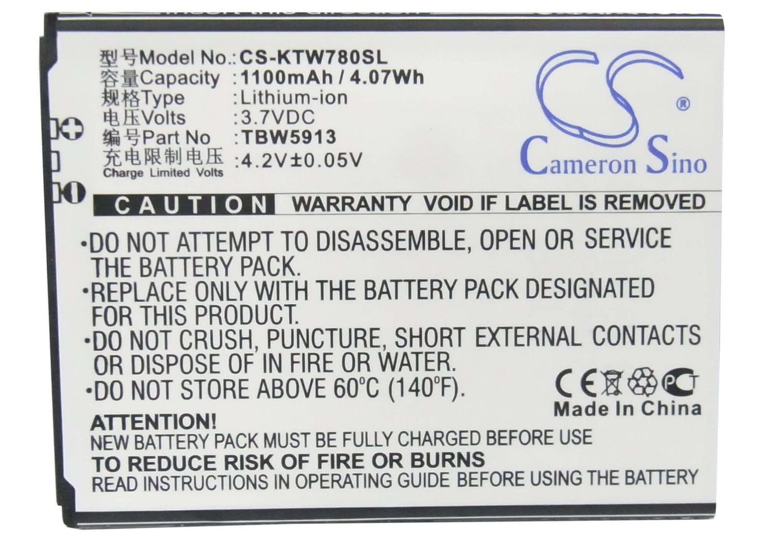 Keep your operations running smoothly with a reliable and long-lasting replacement battery. Order the Cameron Sino CS-KTW780SL today and experience uninterrupted performance!