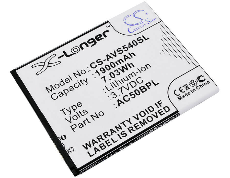 3.7V, Li-ion, 1900mAh, SmartPhone battery fits Archos, Ac50bl, 50b Platinum, 7.03Wh
