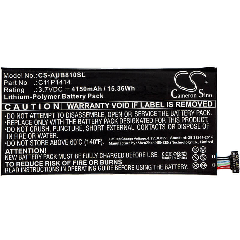3.7V, Li-Polymer, 4150mAh, Tablet battery fits Asus, C11p1414, Cb81, Zenpad 8.0 Power Case, 15.36Wh