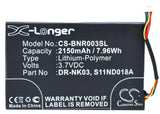 3.7V, Li-Polymer, 2150mAh, E-book, E-reader battery fits Barnes & Noble, Dr-nk03, Bnrv300, Bntv350, 7.96Wh