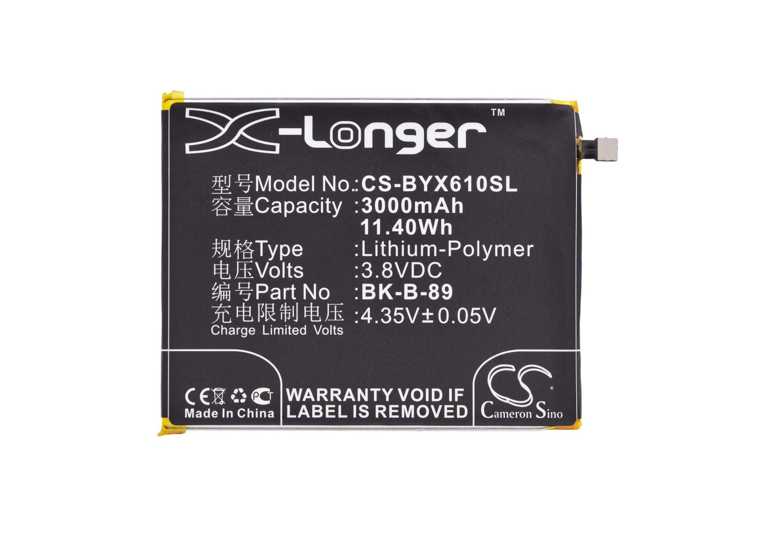 Cameron Sino CS-BYX610SL Replacement Battery for Vivo, Bbk SmartPhone - 3000mAh / 11.4Wh