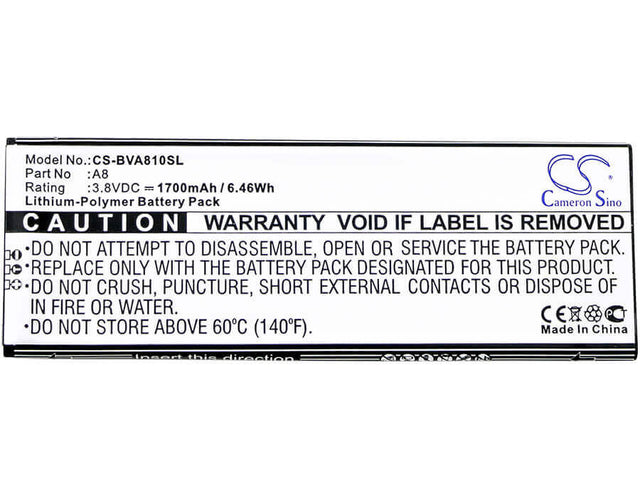 Power up your Blackview A8 with the Cameron Sino CS-BVA810SL replacement battery, designed to restore and extend the performance of your smartphone. With a high-quality 1700mAh Li-Polymer cell, this battery ensures reliable and long-lasting power, allowing you to stay connected without frequent recharges.